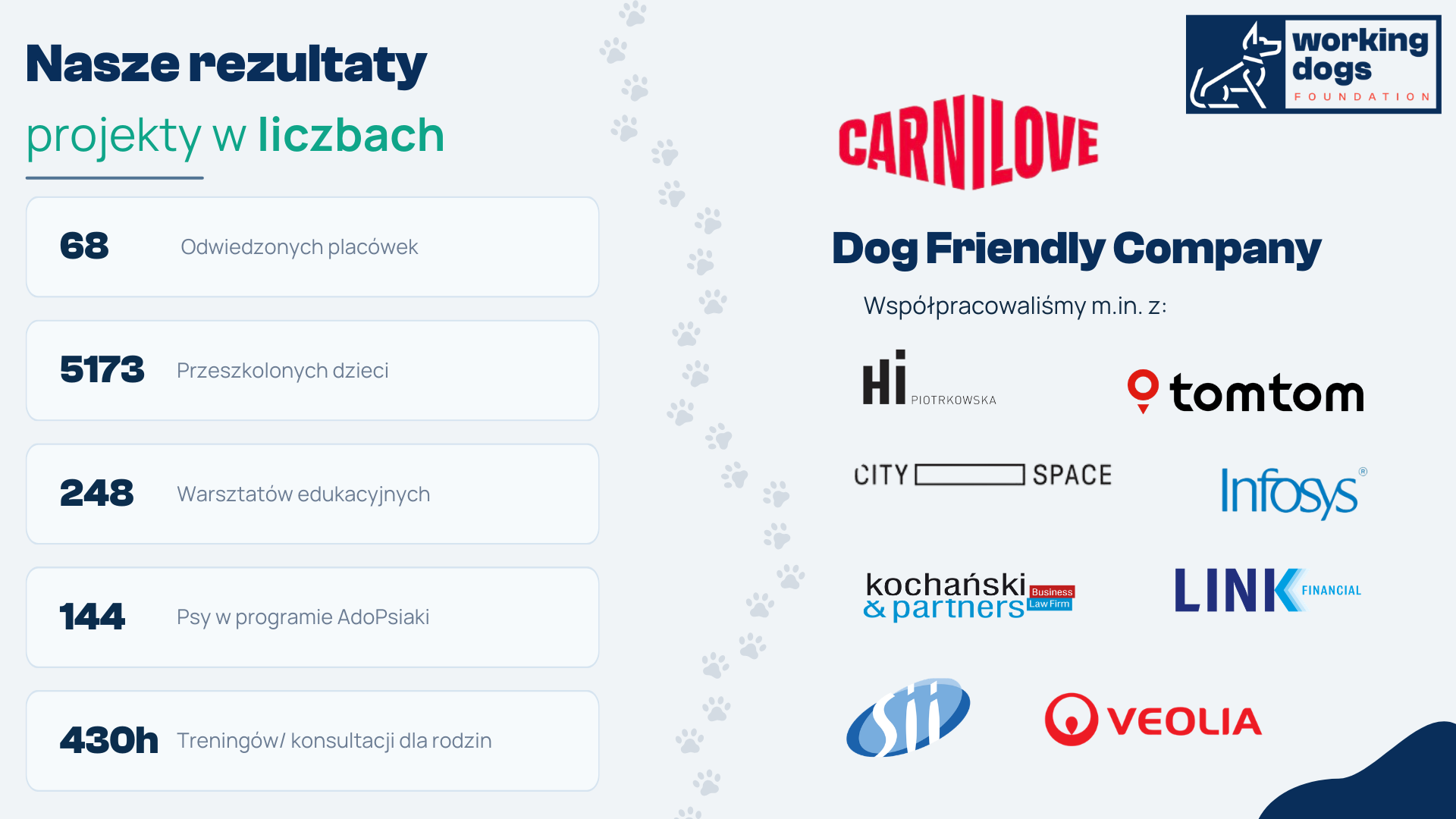 🔗 Dane o działaniach Working Dogs Foundation od 2023 r. znajdziesz w pliku 2. Dane o Working Dogs Foundation |