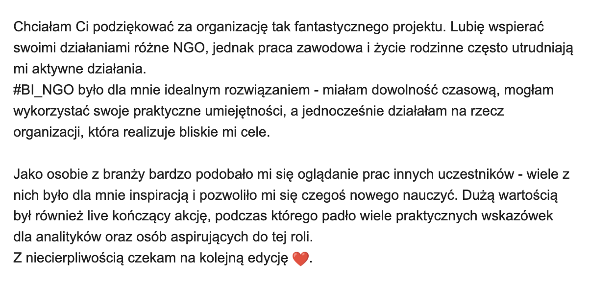 #BI_NGO może być dla Ciebie okazją do nauki i/lub poeksperymentowania z nowymi narzędziami czy sposobami wizualizacji danych.